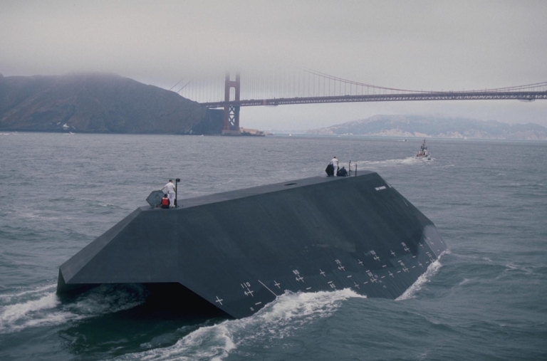Lockheed's 1980s Sea Shadow technology demonstrator was the first ever stealth warship. Anecdotes from the period claim it was so stealthy, it could be detected as a black hole in the ocean wave clutter background (Lockheed-Martin).