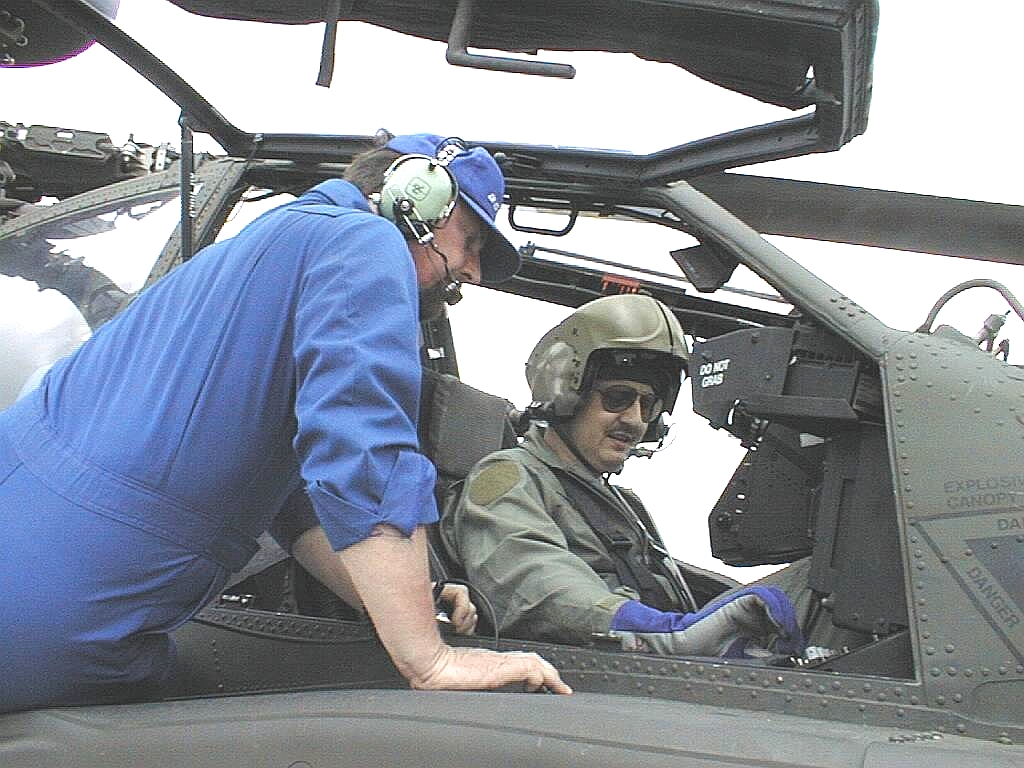![]() Grease filled gearboxes designed for substantial ballistic tolerance to 14.5 mm and 23 mm fire, twin T700 engines with sufficient reserve power to limp home on one powerplant, a tailshaft designed to absorb hits and if cut by fire, not to chop the tail off, extensive use of composite armour to absorb low calibre fire, shrapnel and spall, seat shock absorbers and structural design to absorb extremely high sink rates, a dual redundant 3000 psi hydraulic system and a host of other less evident design features provided the AH-64A with unprecedented damage tolerance. Unique aerodynamic and structural features included a Hughes patented fixed rotor mast, with a coaxial drive shaft, a single piece horizontal stabiliser driven by the flight controls for optimal fuselage angle and visibility over a range of flight regimes, a offset X tail rotor design to provide minimal tip vortex interference, hydraulically actuated weapon pylons to automatically provide the best station angle relative to the airframe for weapon launches. The weapon system of the AH-64A was also revolutionary in its day, freeing the helicopter from the tether of the wire guided TOW missile. The primary weapon of the new Apache was the semiactive laser homing AGM-114A Hellfire missile, designed to destroy AFVs up to the MBT, using its shaped charge warhead. Up to 16 rounds could be carried on four wing pylons. The weapon was targeted using the very new Martin Marietta AAQ-11 Target Acquisition and Designation System (TADS), a nose mounted and helmet steered turret combining a thermal imager, direct magnification telescope, a television camera and a laser rangefinder/designator. The pilot was provided with a helmet steered thermal imager. Both pilot and gunner were provided with the IHADSS collimated helmet mounted CRT projectors, designed to deliver raster scan camera imagery and calligraphic flight, weapon aiming and systems symbology directly into the right eye. The AH-64A was developed with the primary objective of providing an all weather day and night capable tank killing machine, to stop massive Warsaw Pact armoured offensives in the European theatre dead in their tracks, no pun intended. The combination of head steered weapon system and pilot night vision equipment provided an unprecedented ability to operate in Nap Of the Earth (NOE) flight at night. The CONOPS for the AH-64A was stealth by terrain masking, whereby the helicopters would hide behind terrain and approach their target, upon which they would pop up in hover above the terrain, only as high as required to detect, acquire and track their intended targets with the TADS system and engage them with salvoes of Hellfire missiles. Footage from the Desert Storm campaign showed classical examples of this tactic, with an AH-64 gunner firing off a sequence of Hellfires, seconds apart, then "walking" his laser from target to target as the missiles impacted. While tank and motorised infantry killing was the AH-64A's primary role, other capabilities were extant in the basic design. Suppressive fire support could be provided using up to four pods totalling 76 folding fin 2.75 inch rockets, and a ventral head steered M230 30 mm Hughes Chain Gun was available for self defence against other helicopters and SPAAGs, while also providing the ability to kill dismounted infantry, their supporting IFVs and APCs, and other soft skinned vehicles such as trucks and mobile command vehicles. In the almost quarter century since the AH-64A was conceived, the threat evolved accordingly. The baseline SPAAG of the day, the ZSU-23-4P, was superceded by designs with pulse Doppler clutter rejecting radars. Importantly, the shoulder launched SAM evolved from the cheap and nasty "shoot up the tailpipe" SA-7, to modern all aspect two colour seeker designs built to reject background and flares. Laser guided MANPADS have also proliferated, while laser rangefinders are now ubiquitous. MBTs can now shoot anti-helicopter fragmentation rounds, and most IFVs and APCs have rapid fire cannon. Thermal imaging sights are now commonplace on armour, and even a two bit helicopter may have NVGs onboard. The attack helicopter is today the "capital vehicle" of the land battle, having displaced the MBT into the niche role of close in mop up of dug in forces and heavy emplacements. This in turn has produced a situation where the value of the attack helicopter as a target easily justifies the launch of an expensive area defence Doppler radar guided SAM to kill it. The threat of the laser guided Hellfire spawned a new generation of battlefield smoke generators, dispensing clouds of infrared opaque particles. While these can often be penetrated by a thermal imager, they can often in sufficient concentration scatter the 1.066 micron band designator laser beam to the point of being unusable. The evolving environment saw the AH-64A progressively upgraded with the APR-39 Radar Warning Receiver, the ALQ-136 defensive jammer, the ALQ-144 infrared jammer and more recently, the AVR-2 laser warning receiver. In effect the AH-64A sprouted all of the avionic refinements of a mid seventies fighter aircraft. The 1991 Gulf campaign highlighted the strengths and the weaknesses of the AH-64A and its systems. The aircraft performed superbly in its primary tank killing role, and proved to be an exceptional tool for killing battlefield air defences. Of major importance was the famous radar killing sortie, in which a section of Apaches led by a USAF Pave Low III special operations helicopter penetrated undetected inside the Iraqi air defence perimeter and killed a key radar installation in the opening minutes of the air battle. Despite these successes, inclement weather, sand clouds and fog complicated operations by degrading thermal imager and laser performance. Long range night sorties under such conditions produced a very high workload for AH-64 crews, reducing their combat potential when contact was made with the enemy. Another pro
